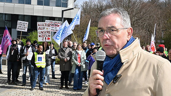 Die dritte Runde der Tarifverhandlungen für den hessischen Landesdienst hat begonnen. Zuvor setzten die Beschäftigten ein Zeichen.